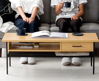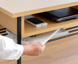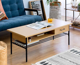 価格: 12,400 円(税込)塩系インテリアや西海岸テイストに合う、木目模様とスチール素材を組み合わせた引き出し付きテーブルCARTER〔カーター〕の商品ページです。エアリゾームでは、収納付きテーブルを送料無料でお届けします。