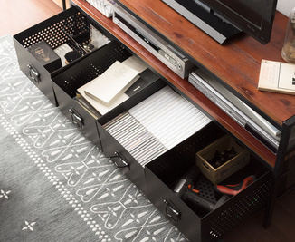 価格: 15,980 円(税込)パイン集成材を贅沢に使用した天板にマットで重厚なスチールを組み合わせた、西海岸やブルックリンスタイルにも最適なヴィンテージデザインTVボード”BILLS(ビルズ)”設計に気を配り、ヴィンテージアイテムにありがちな野暮ったさの無い、一般住宅でもコーディネートのしやすい現代的なデザインに仕上げました。また、仕切りの無いオープン収納棚と4杯の引き出しのついた豊富な収納力で、テレビ周りをすっきりと整理していただけます。